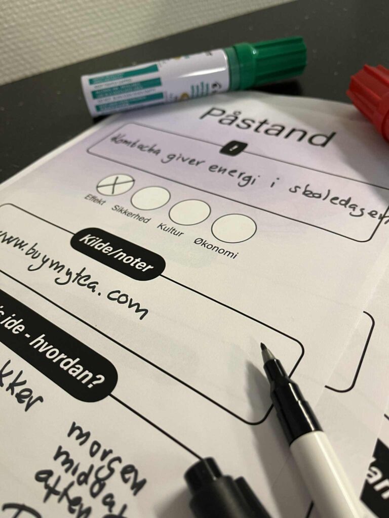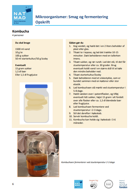 Eleverne eksperimentere med at brygge deres egen kombucha. Desuden måles ph, der ses på lag og der noteres. Undersøgelsen er det analoge udgangspunkt i forløbet.