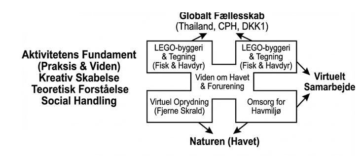Børnene tegner fisk/havdyr eller bygger dem af LEGO. Dette tilfredsstiller barnets behov for “handling, udtryk og lysten til at skabe”. Det er det manuelle håndværk. Det sker fysisk i Thailand, København og DKK1.