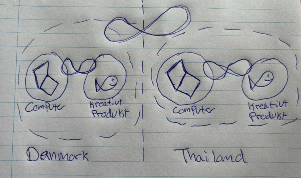 Der er etableret to værksteder, et i Danmark og et i Thailand, som er forbundet via nettet. Vores værksteder kan ses som glokale værksteder, både globale og lokale på samme tid.